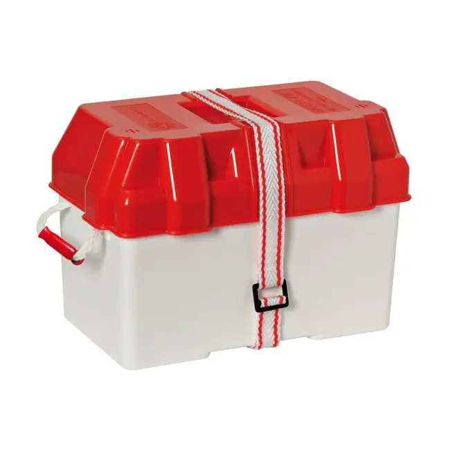 La caja de batería es ideal para barcos, autocaravanas, caravanas, etc. Esta caja de batería está fabricada en plástico y viene completa con tapa y correa de seguridad. Una caja de batería protege su batería y ayuda a prevenir la corrosión de la misma.